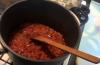 Drobně nakrájenou cibuli a na delší jemné hranolky nakrájenou šunku nebo šunkový salám společně opékáme na másle. Pak přidáme nasekaná rajčata, malou špetku sušeného tymiánu a rajčata krátce podusíme. Přidáme nasekaný česnek, přisolíme a společně několik minut dál dusíme. Nakonec vmícháme zakysanou smetanu a necháme prohřát. Podáváme s těstovinami. Obměna: Když do pokrmu přidáme karí koření, je vhodnou přílohou i rýže.